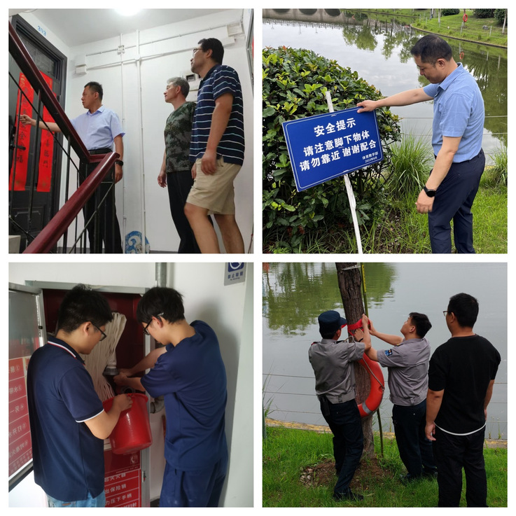 按照横向到边、纵向到底原则,学校保卫处对紫云路校区徽学楼、学生公寓、食堂以及金寨路校区学生公寓、家属楼等重点区域开展地毯式排查;易海湖畔,保卫处工作人员对水域附近的防溺水装置展开全面检查,重点查看救生圈、警示标识、防护栏等设施,仔细检查救生设备是否完好无损、警示标识是否清晰可见、防护栏是否存在松动破损等情况,及时监督到位、通知到位、整改到位,确保为师生生命安全保驾护航。