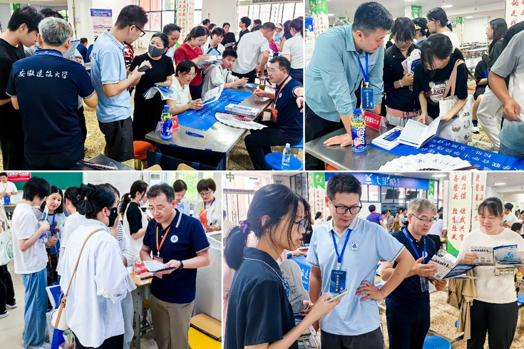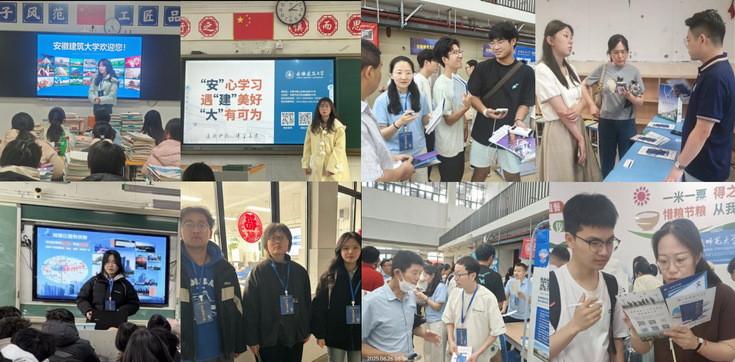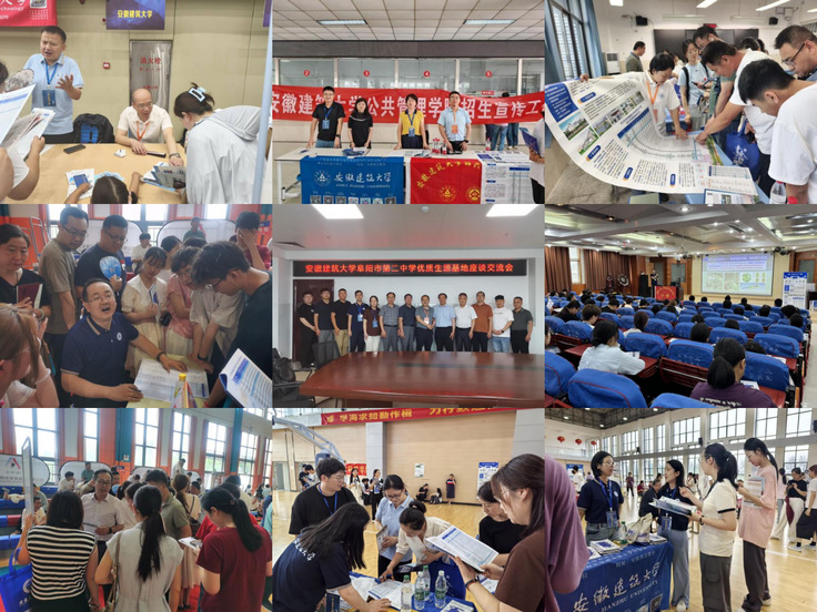 善事:多场域展开招宣活动。一方面,分布式开展大范围线下宣传。6月25日至28日期间,学院领导带领20余位教师赶赴阜阳市、滁州市、天长市等地的省内示范高中和优质生源中学,开展“专场招生宣讲”“优质生源地座谈”“现场咨询答疑”等线下招生宣传活动。通过专场招生宣讲会,介绍学校发展历程、学科优势、专业设置以及就业前景等内容,播放招宣视频,大幅提升了学生及家长对安建大的认知度、认可度、认同度。通过优质生源地座谈会,与阜阳二中、炳辉中学等校领导、高三班主任代表重点阐释安建大办学优势、招生政策与专业特色,并深入交流谋划未来合作,强化了相关中学与安建大的联系密度。通过设立招生咨询点,面对面深度交流学校及学院专业设置、特色优势、前沿培养体系以及广阔的就业与发展前景,受到学校领导老师、同学们和家长们的热烈欢迎。