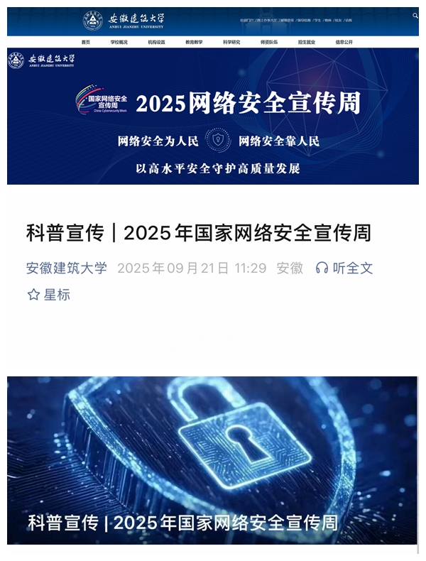 新媒体推出“网络安全为人民 网络安全靠人民——以高水平安全守护高质量发展”微信推文,通过案例分析、知识问答等形式,将专业的网络安全知识转化为易懂易记的内容,帮助师生快速掌握风险识别与应对方法,切实提升网络安全防护技能。(作者:袁翠艳 一审:李超;二审:王浩; 三审:章曙光)