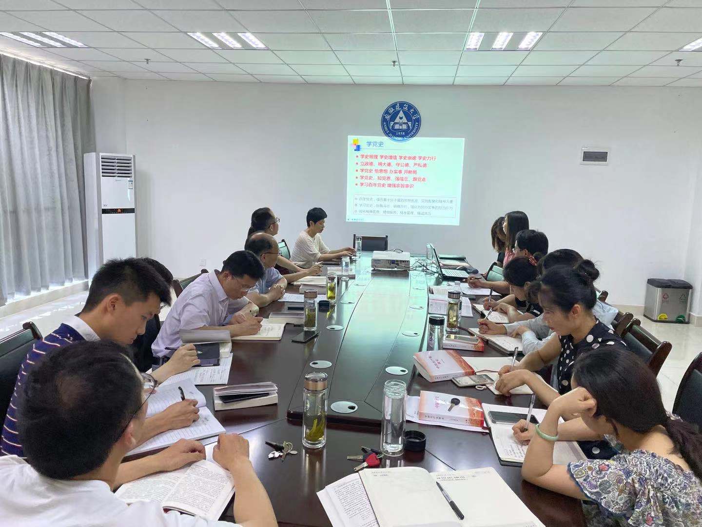 本网讯 深入学习贯彻落实习近平总书记在党史学习教育动员大会上的讲话精神,进一步推动党史学习教育走深走实,6月21日下午,教务处(招生办)举办党史学习教育专题党课。支部书记储金龙以“学党史,抓落实,强管理,促发展”为题,为支部成员上了一次生动的党课。